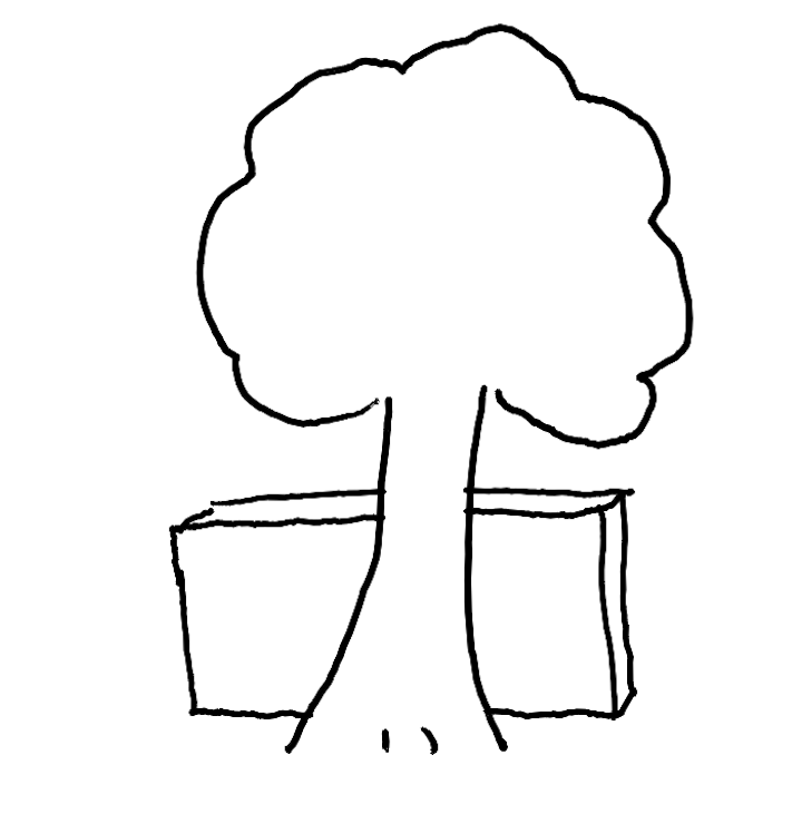 - H1: A box behind the tree