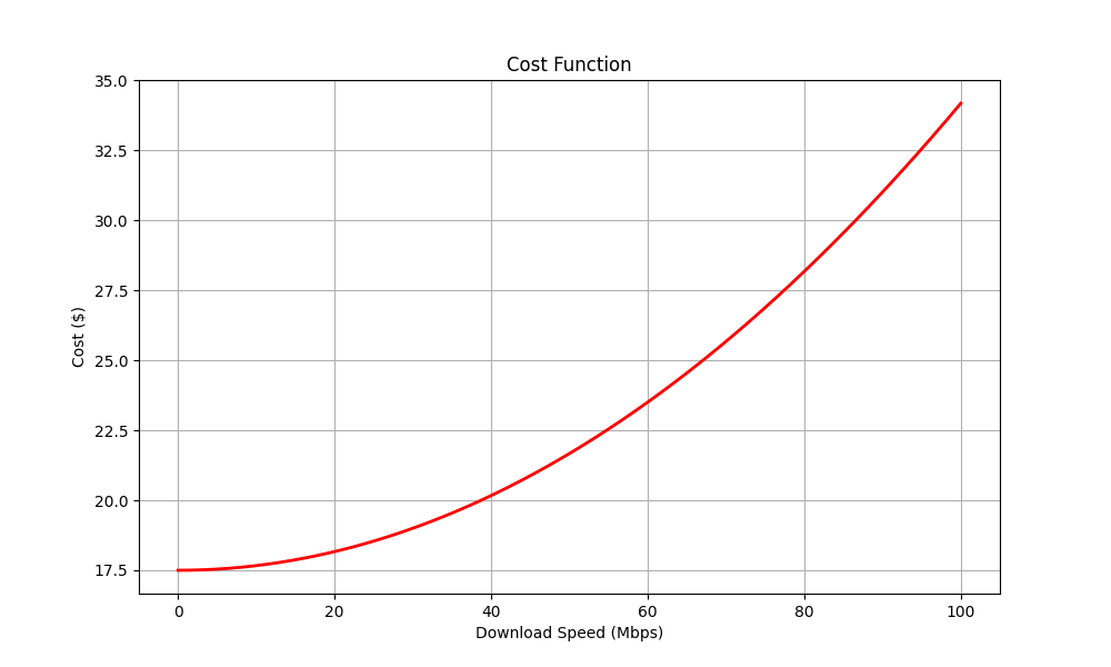For our simple example, the plan cost as a function of download speed can be defined by the following function: